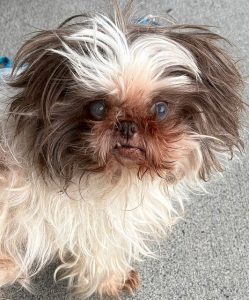 She’s been with us a week and she’s already had a much needed grooming and bath, her intake appointment with the vet happened within days of her arrival and she had a complete exam, including blood work, which indicates infection and she’s taking medication for that. She has an ophthalmologist appointment in two weeks and later in the month she’ll have a dental (her teeth are terrible) and she’ll be spayed. She was pretty shut down when she arrived, but each day she becomes more comfortable with her surroundings. She’s very visually impaired, but she’s beginning to find her way around the house. She sleeps all night and eats well.