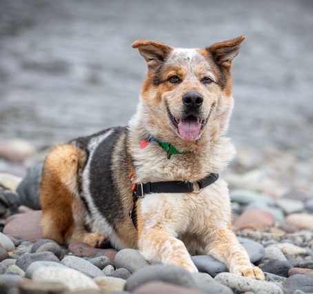 8 year old Hades is a sweet and gentle boy who thrives on attention from his humans. Don’t let his looks fool you, he may look more like a cattle dog, but he has the personality of a Malamute! Hades is a unique, 55 pound mixed breed boy.