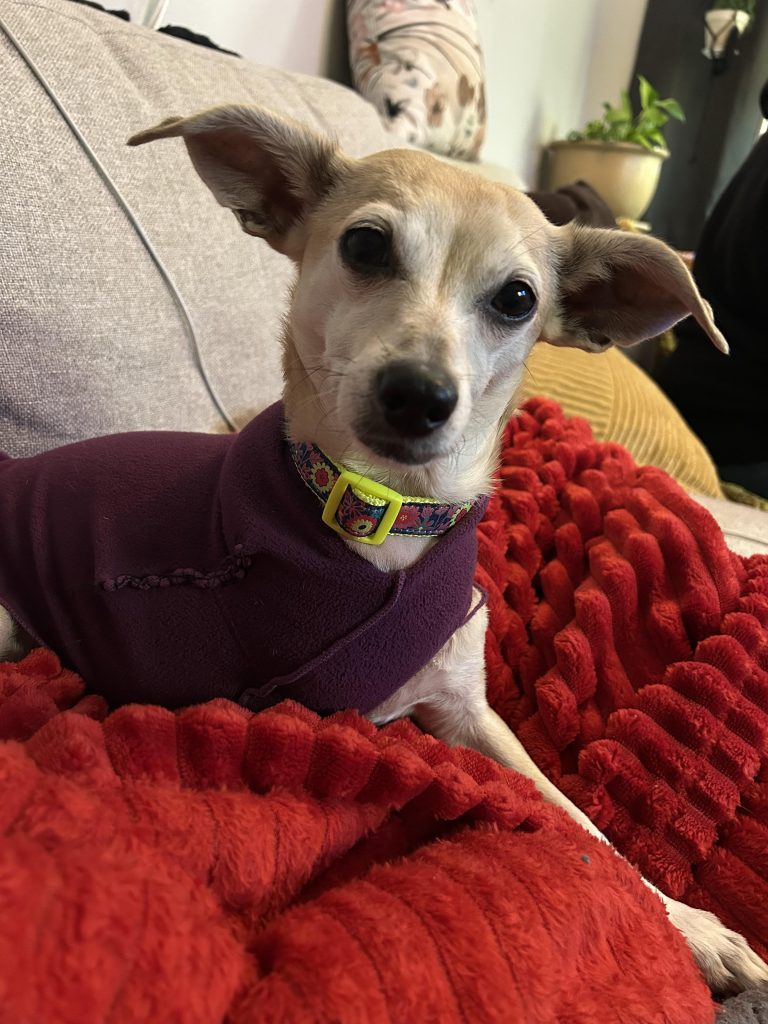 Macy is a delightful lady who will win you over with just one look. She is a young senior, only 8 years old. Macy is a 12-pound chihuahua mix. She is gentle and loving and she is ready to be a cherished family member. Macy would love a family that will include her in their plans. Whether it’s lounging around on a cozy couch or being someone’s sidekick on a Sunday drive, this girl is happy to be right beside you. Even though Macy’s a tripod, she can keep up with everyone….she doesn’t let anything get her down!