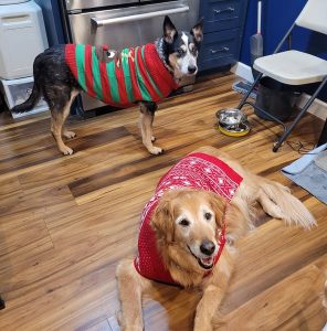 Like most older dogs, she has some arthritis, but it doesn’t slow her down. We go on daily walks and seek out adventures on the weekends. She loves to chase a laser around, which surprised us all (especially the cats!). She is enjoying cuddling up with her new Old Dog Haven foster sisters Melly and Daisy and you will often find them sharing a cozy bed. All in all, Misha is an amazing dog and has been a delightful addition to our home and family. She’s an incredibly intelligent and well-mannered senior girl and seeing her personality blossom has been wonderful
