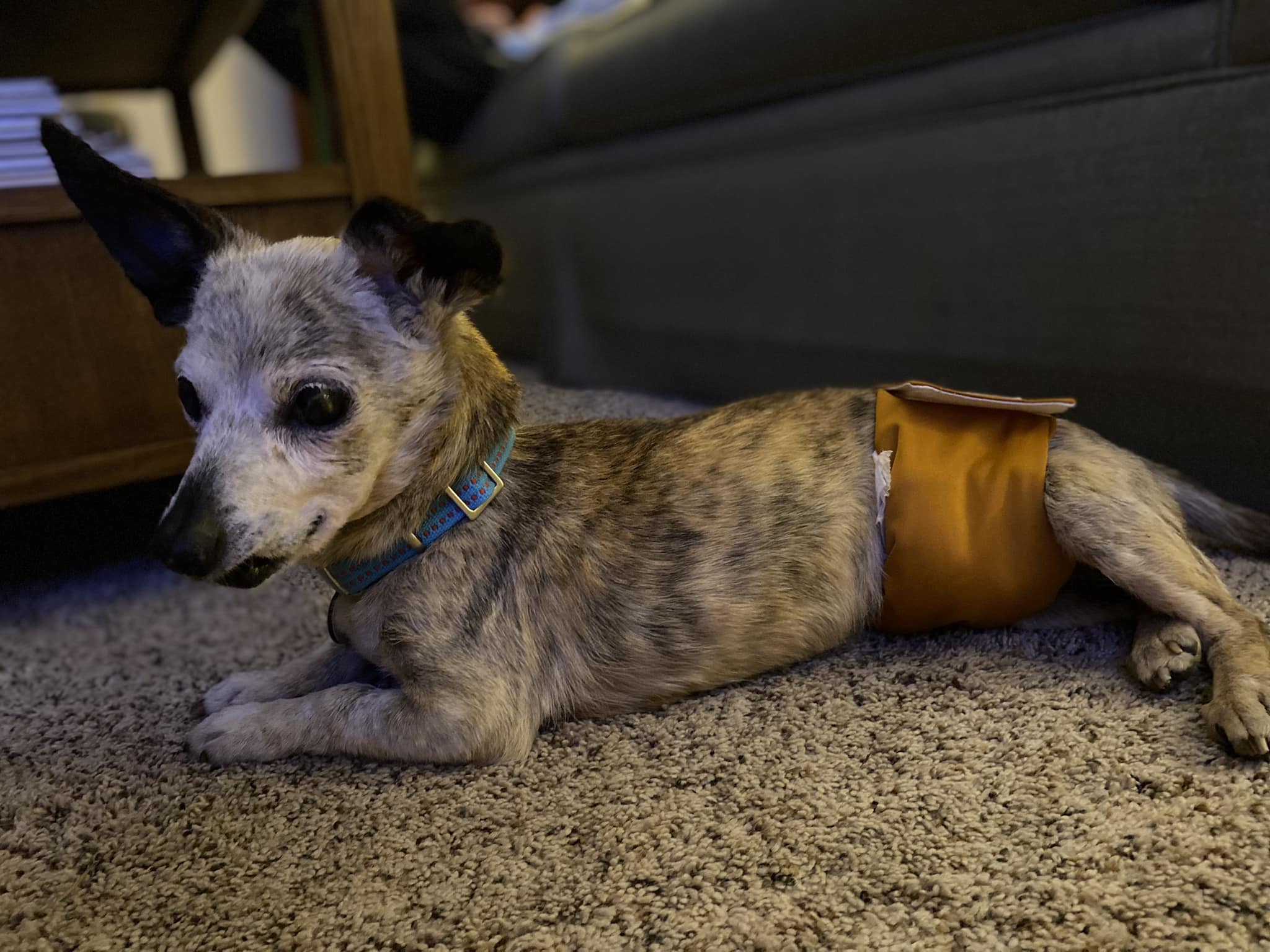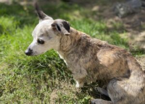 Nini was brought to a shelter in November of 2023 as a stray where the vet thought he was close to 15 years old. This adorable little boy was really in rough shape. He was emaciated (weighing only half his body weight) and blind from living with untreated dry eye for so long. He had severe dental disease and was still intact with testicular tumors. While Old Dog Haven looked for a permanent placement, he was neutered and placed in a wonderful temporary shelter foster home. We are so grateful to this foster family which put a huge amount of effort and love into the start of Nini’s recovery and gave him a place to relax and regain his strength.