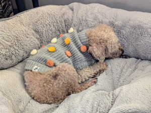 “Opal is the sweetest little girl. She’s blind and partially deaf, but she quickly mapped out the house and learned how to find her way around the yard and back to the deck. She LOVES to cuddle and her favorite thing to do is to sit on our chests and snooze cheek-to-cheek. She likes to give us gentle kisses and enjoys snuggling up to Slim, our other Old Dog Haven foster dog. She’s very brave and doesn’t let her blindness stop her from exploring. She can put away a lot of food for a dog her size and if Slim isn’t quick, she’ll wolf down his bowl of food too. She communicates with little whines when she needs something, so we just run down the checklist until she’s satisfied. We are already wrapped around those tiny paws.”