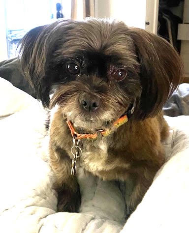 “Hi! My name is Ozzy. I am in need of a new home, one where I can stay for the rest of my days. I just turned 12 years old last November. In case you are wondering, I am a mix of a Shih Tzu and a Cairn Terrier. I weigh 14 pounds. My family will tell you I am “sweet, snuggly and loving”.